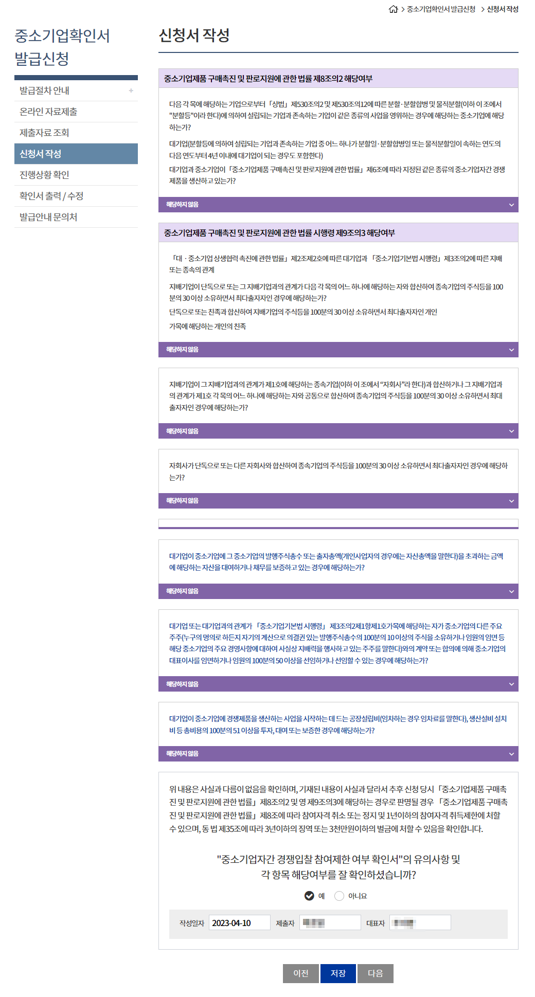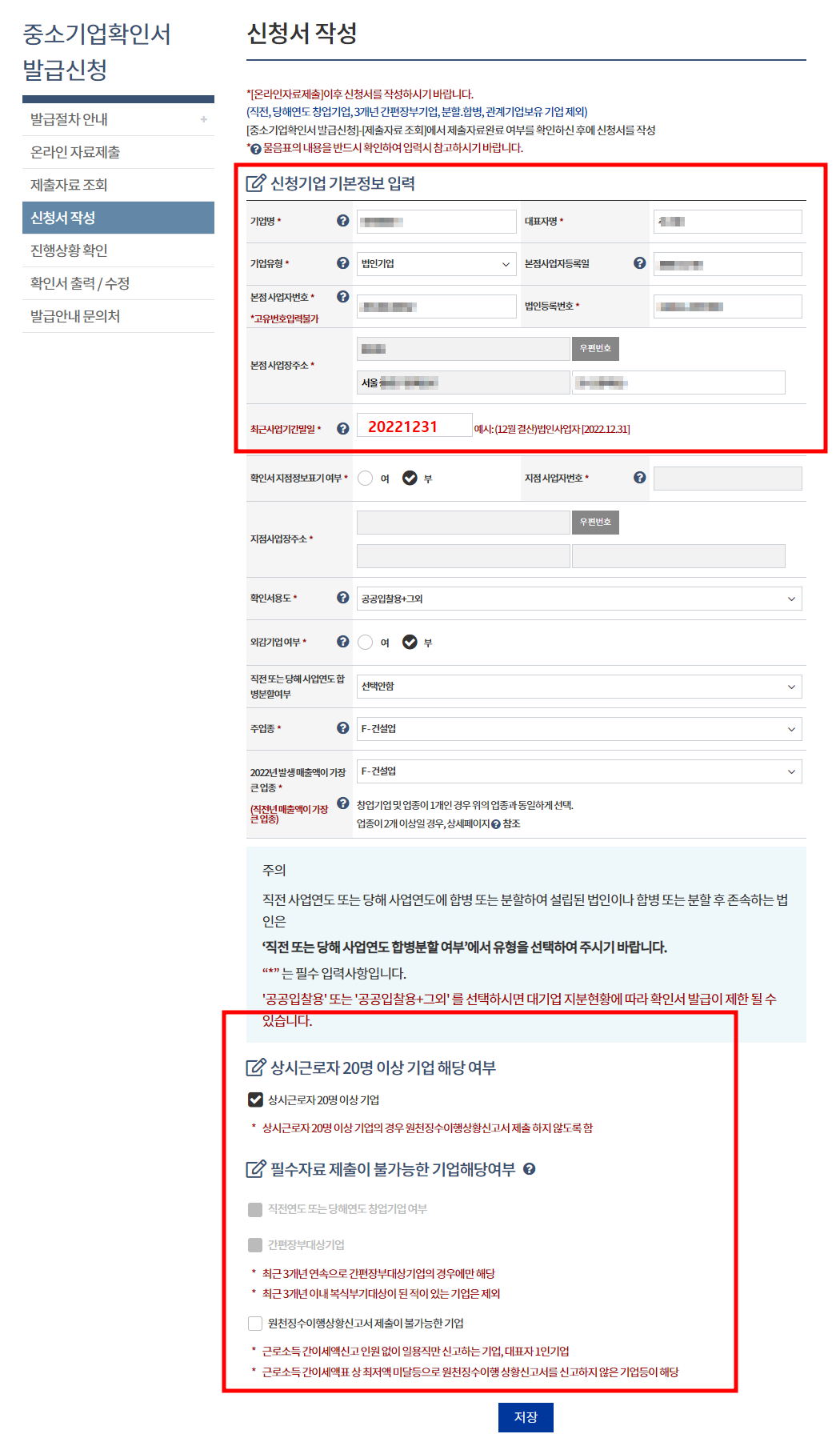 이후 최종적으로 내용 확인 후 저장을 누르면 되는데 주요 체크사항은 대기업과의 관계 등을 확인한다.