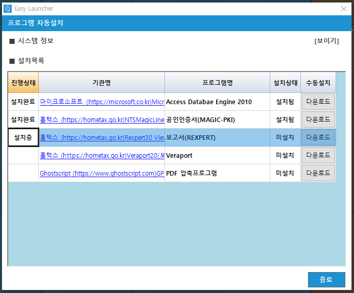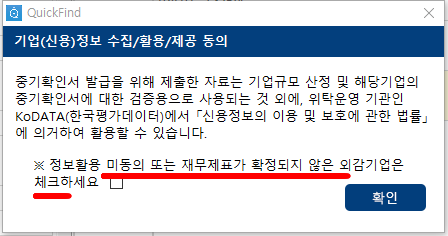 바로 제출이 필요한경우 '퀵파인드' 프로그램을 설치하라고 나온다.