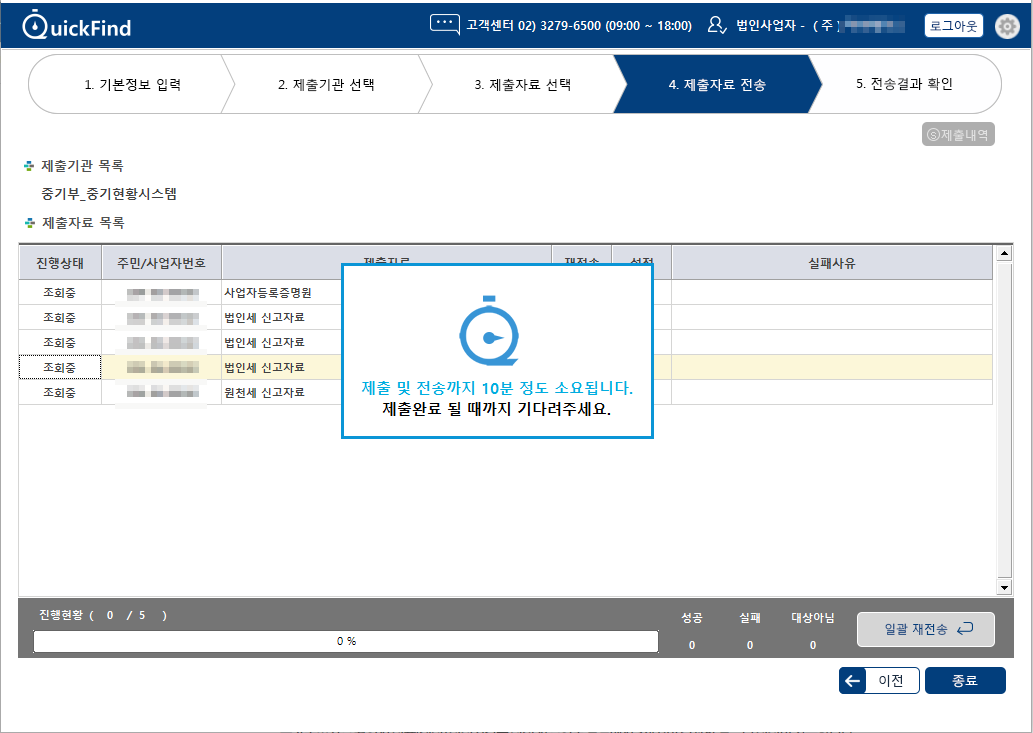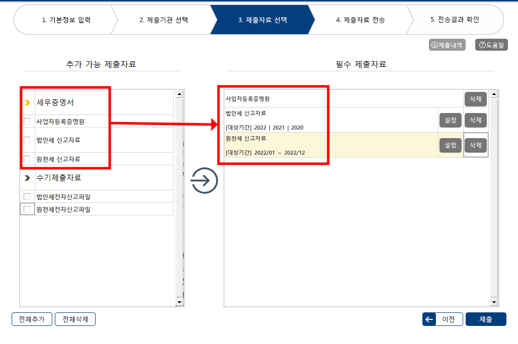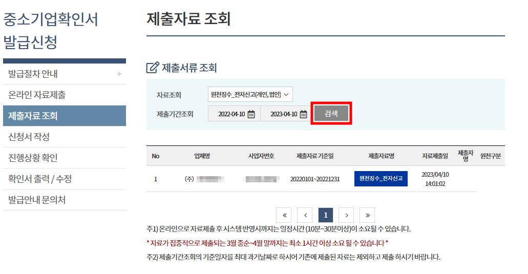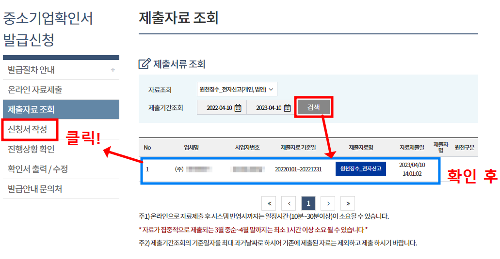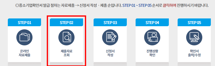 이후 STEP02 제출자료 조회를 클릭하여 잘 제출되었는지 확인한다.