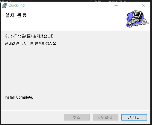 각종 프로그램이 설치되면서 완료 되면 드디어 '퀵파인드' 프로그램이 실행된다.