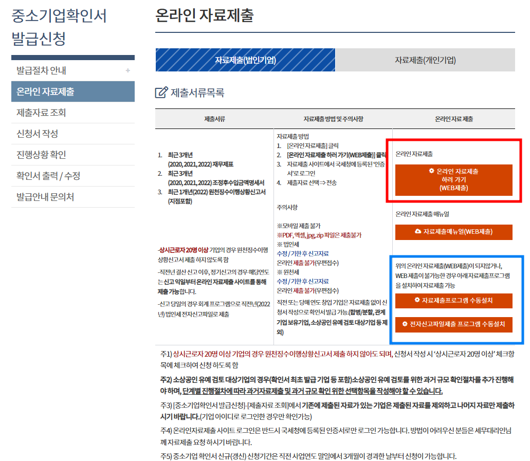 * 아래 프로그램 수동설치는 오류 났을 때 하는것으로 바로 온라인 자료제출 클릭한다.