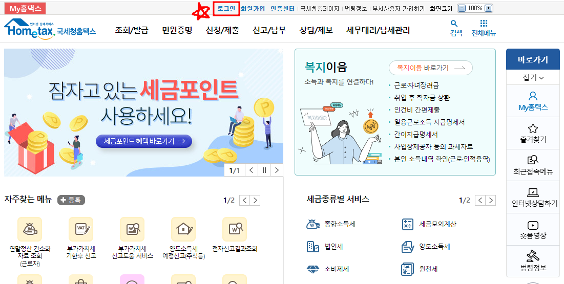 01. 홈택스 접속 후 사업장 로그인하기 - https://hometax.go.kr/