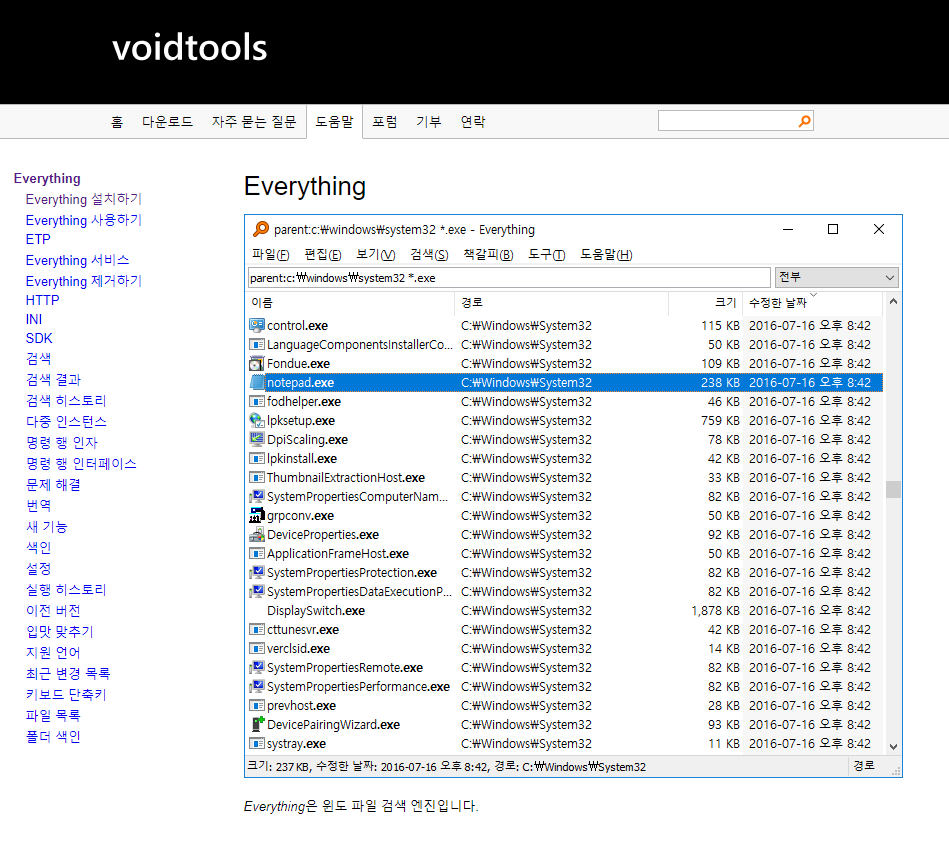 [EVERYTHING] 홈페이지(한국어 페이지) > https://www.voidtools.com/ko-kr/