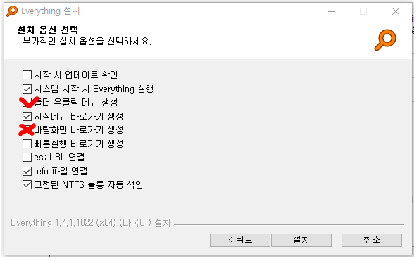 개인적으로 기본값에서 폴더 우클릭은 체크하고, 바탕화면 바로가기는 해제했다.